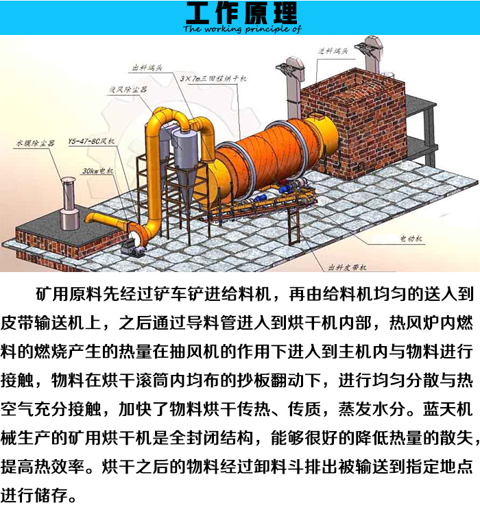 礦用烘干機(jī)( 礦用烘干設(shè)備)廣泛用于建材,冶金、選礦、化工、水泥等行業(yè),主要用于礦渣、石灰石、粘土、河沙、石英沙、水渣等濕性大、比重大的的物料。礦渣烘干生產(chǎn)線,主要由回轉(zhuǎn)筒體、引風(fēng)設(shè)備、高速打散設(shè)備、揚(yáng)料板,自清掃裝置、傳動裝置,輸送設(shè)備、熱風(fēng)設(shè)備、減速機(jī)、支撐裝置及密封裝置等部件組成。